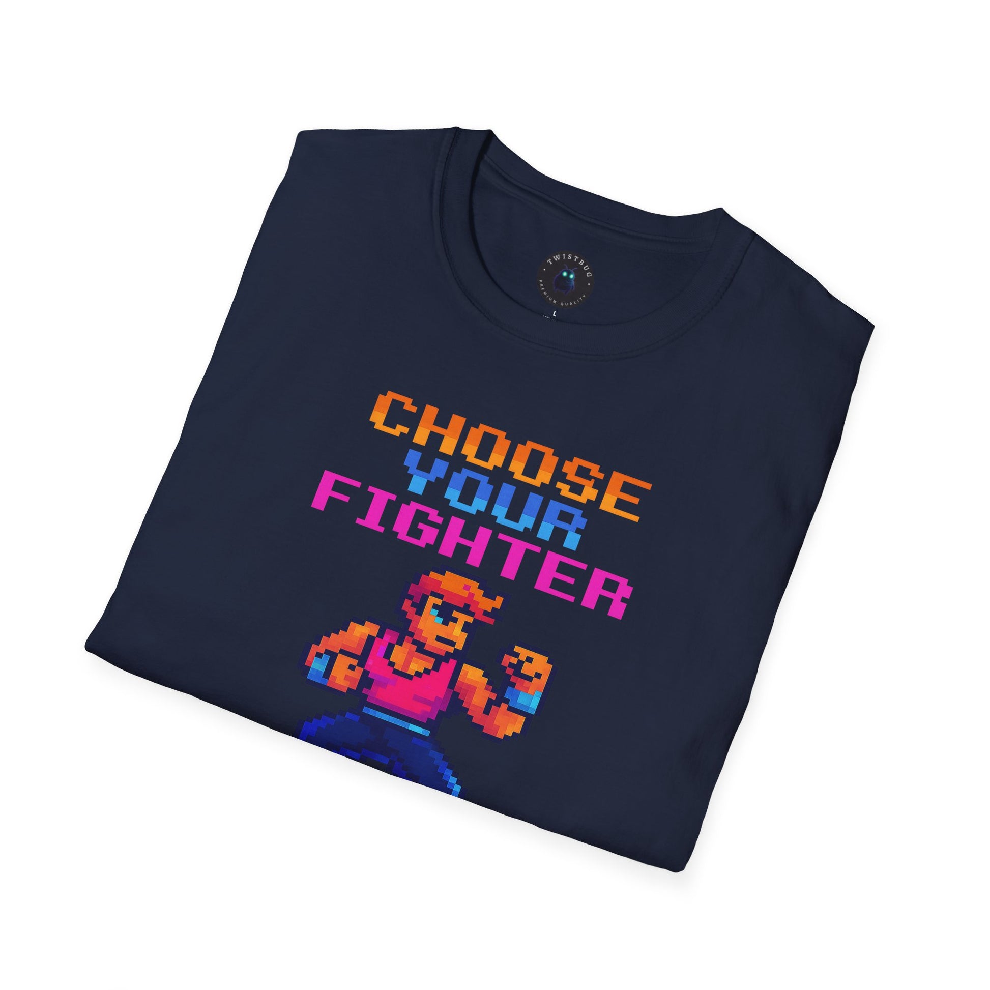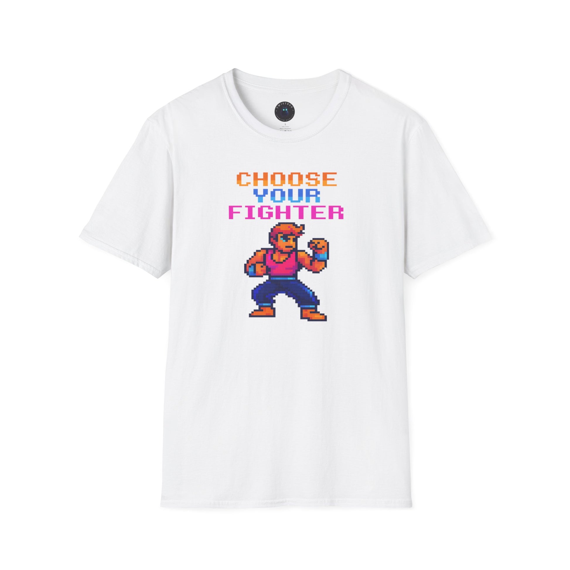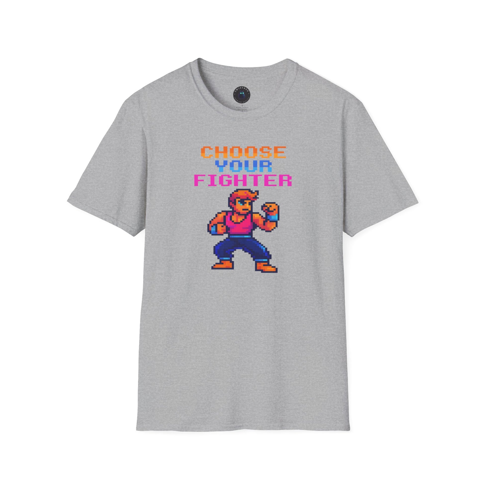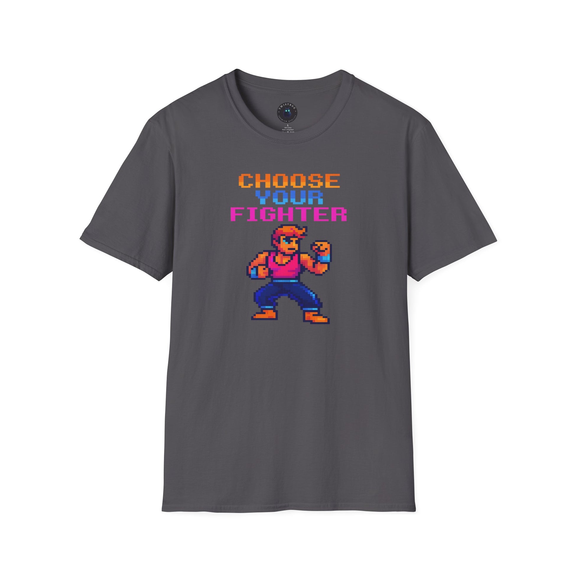 The Choose Your Fighter T-shirt brings back the golden age of pixel brawlers — bright 8-bit colors, arcade attitude, and that unmistakable retro energy. Designed for gamers, collectors, and anyone who grew up mashing buttons under CRT glow.