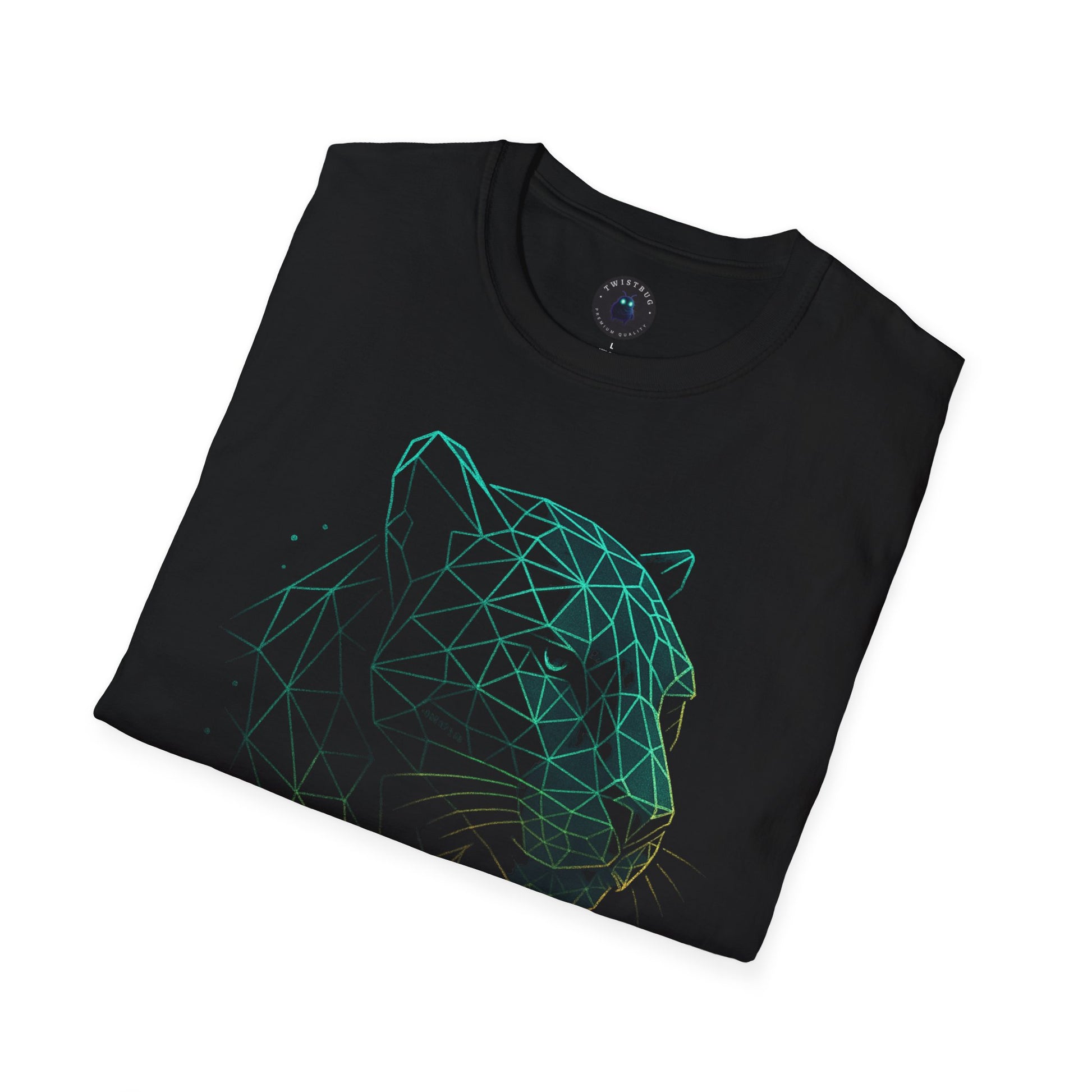 Step into the glitch-wild jungle with the Neon Panther Graphic Tee. Featuring a futuristic wireframe panther in glowing teal and gold, this shirt fuses cyberpunk energy with primal nature vibes.