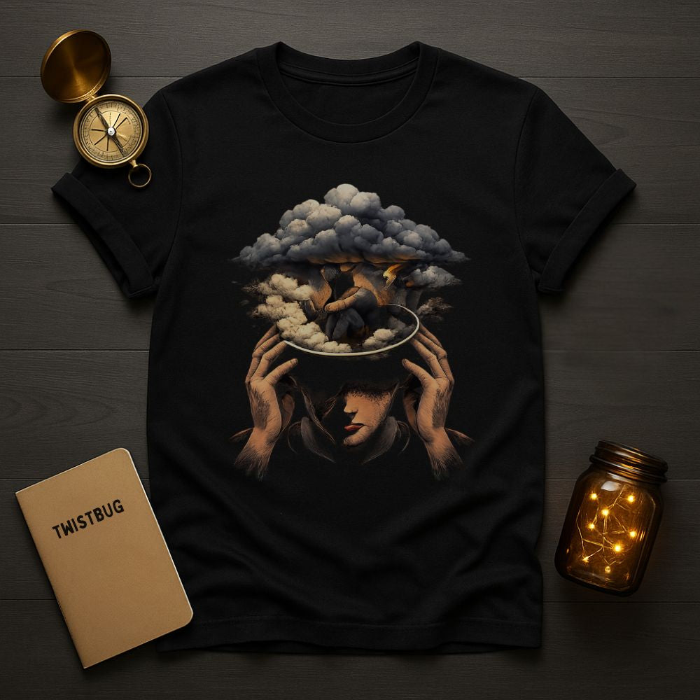 A surreal graphic tee about feeling stuck inside your own thoughts.
